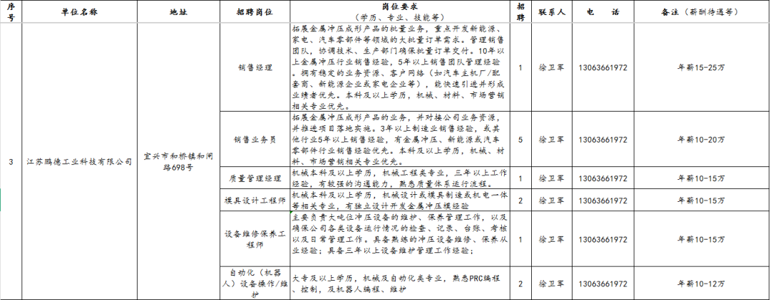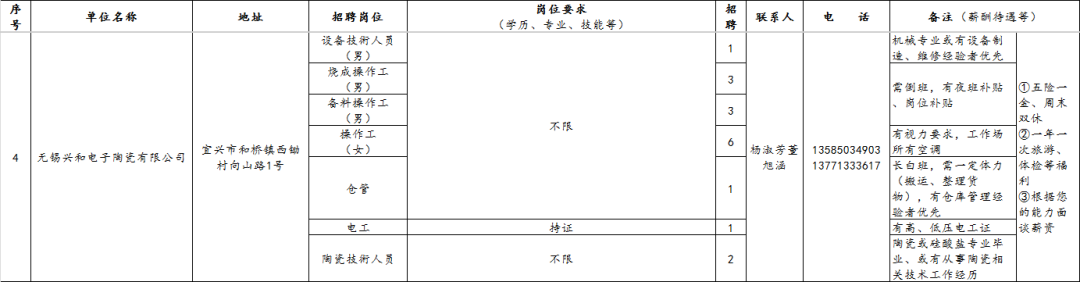 【宜兴招聘信息】2025年9月和桥镇重点企业招聘信息