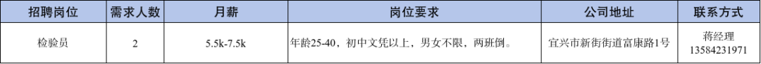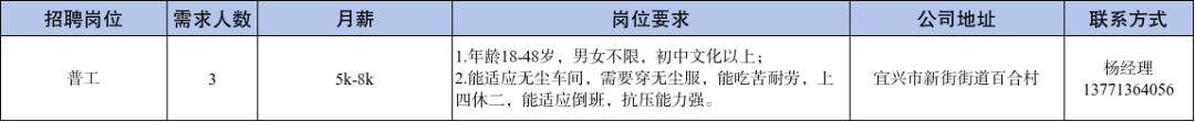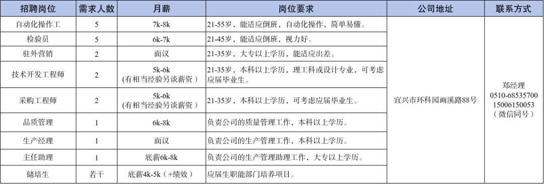 【宜兴新街招聘】2025年9月新街街道部分重点企业招聘信息