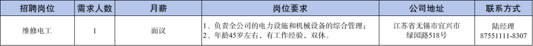 宜兴招聘网(宜兴人才网)运营中心版权所有通讯地址:宜兴市新源路67号